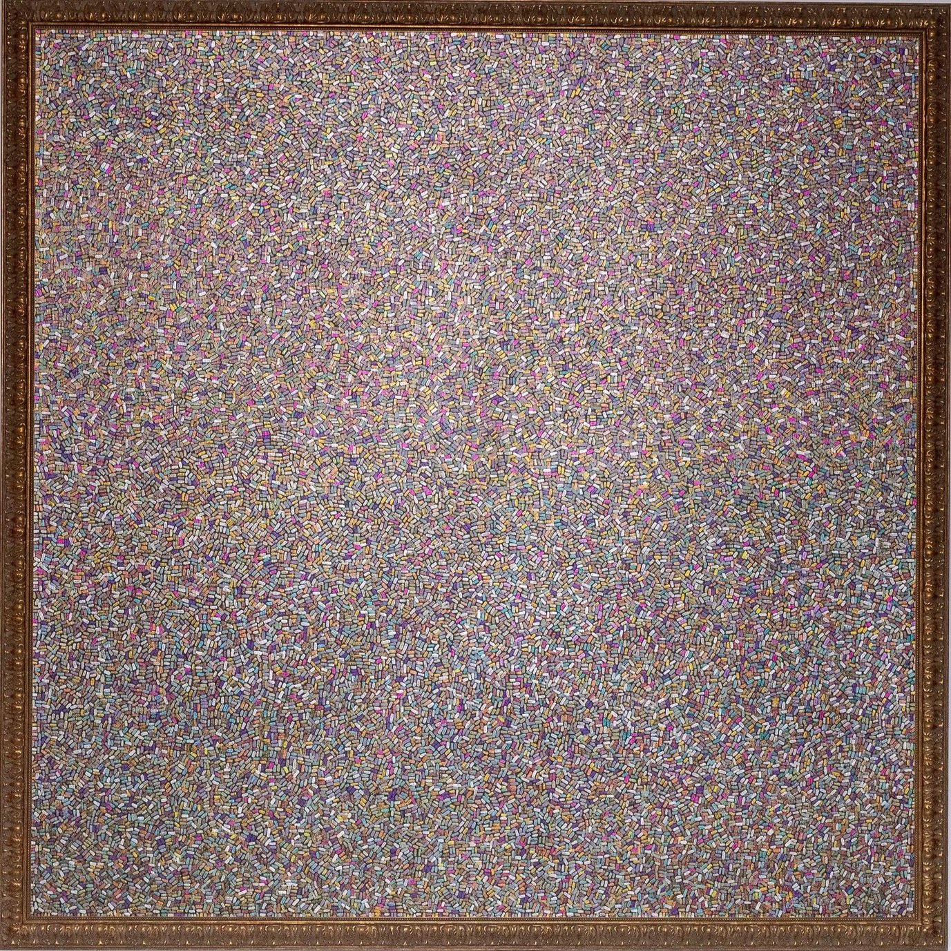 Polvo doméstico y medio acrílico sobre tela, 220 x 220 cm.
